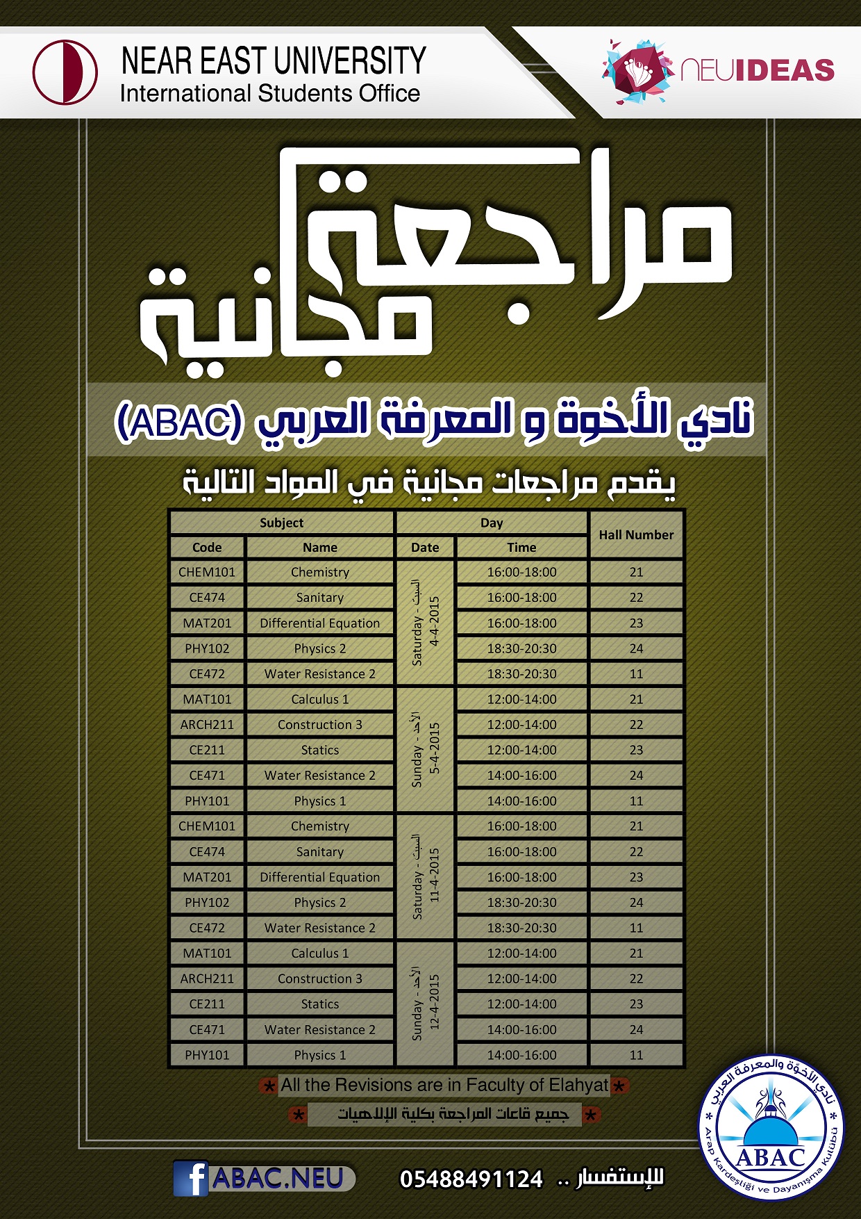 Arab Brothers Acknowledgment Club (ABAC) Engineering courses revision timetable